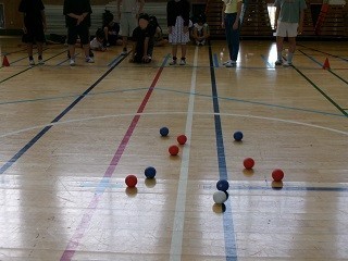 豊島区スポーツ推進委員協議会の3人の先生方にいらしていただき、ボッチャの体験をしました。