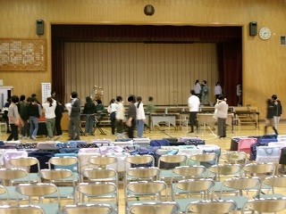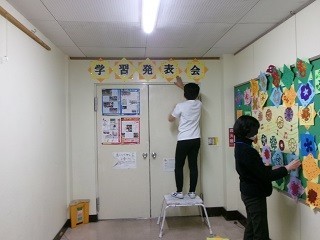 6年生が先生方と一緒に会場準備の仕上げをしました。