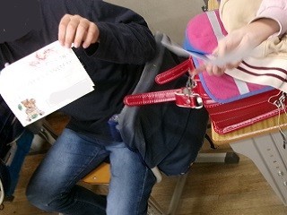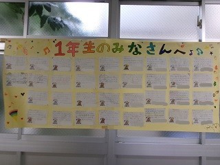 1年生が6年生の教室を訪れ、先輩にお手紙を渡しました。