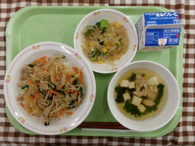 今日はお肉と一緒に炒めてビビンバにして出します。