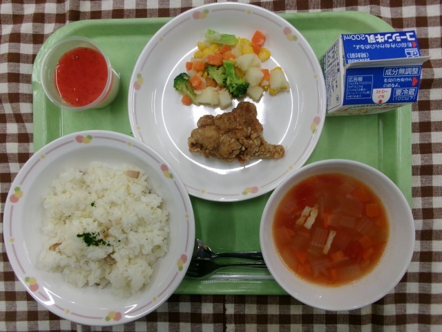 クリスマスカラーの給食は、目からもおいしくいただけます。