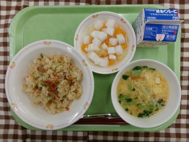 給食では辛さは加えてはいませんが、仕上げに酢を入れて作っています♪