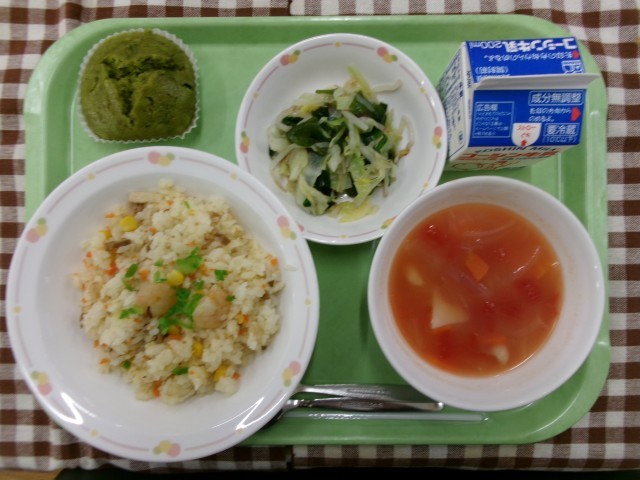 抹茶蒸しパンには、小豆の甘納豆も入れて作っています♪