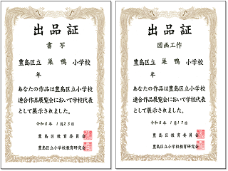 まずは、豊島区立小学校連合作品展覧会の書写・図画工作で、巣鴨小学校の代表となったお友達。