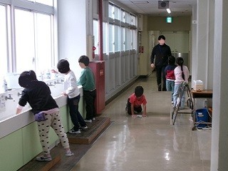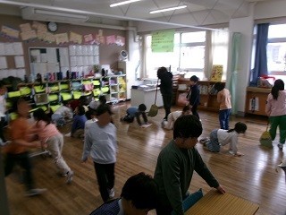 掃除も、友達と一緒に手際よく進め、自分たちの教室や廊下をきれいにしています。