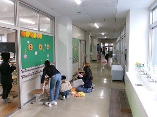 明日の入学式に備えて、教室や会場、教科書や道具箱などの配布物の準備が整いました。6年生が大活躍でした。