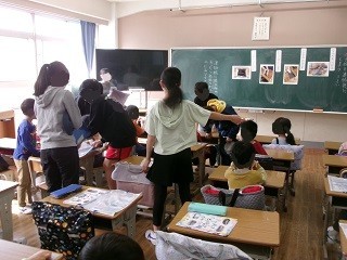 教室では、6年生が待っていていろいろ教えてくれたり、手伝ってくれたりしていました。