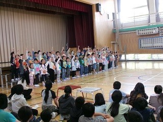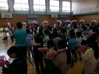 最後に、1年生は6年生と一緒に、5年生の鍵盤ハーモニカのリズムに乗った演奏に合わせて退場しました。