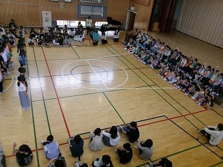 昨年度の代表委員会の司会による、1年生を迎える会の始まりです。