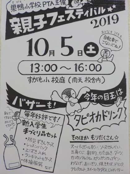 明日は親子フェスティバルがあります! 公開日 2019/10/04 更新日 2019/10/04 お知らせ 10月5日土曜日は13時から本校校庭で「親子フェスティバル」が開催されます。 この日に向けて、担当のお母様方には各方面に連絡し準備に手を尽くしていただきました。バザー品もずいぶん集まりました。ご協力いただいた方ありがとうございます。 明日はお天気にも恵まれそうです。暑さ対策を万全にしてお越しください。 いいね(0)