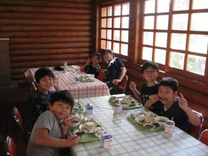 ランチルームに元気に挨拶をして入ると、色々な種類の料理を見て喜んでいました。