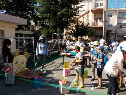 親父の会の「射的」やスキップの皆さんの「輪投げコーナー」、開放委員さんの「スーパーボールすくい」も大賑わいでした。汗だくでやってくださったPTAの実行委員の皆さん、子供たちがとても楽しそうでした。ありがとうございました。また、本当に多くの保護者の方・地域の皆様にご協力いただきました。重ねてお礼申し上げます。