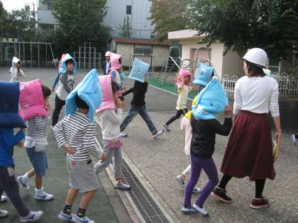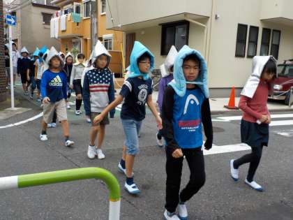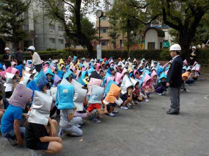 そんな中、今日は近隣火災という想定で、避難訓練を行いました。1次避難場所校庭では,危険が迫ってくるという想定で、2次避難場所である南大塚公園まで全校児童が避難しました。台風の記憶が新しいためか、子どもたちもみんな真剣に、黙って静かに避難することができました。