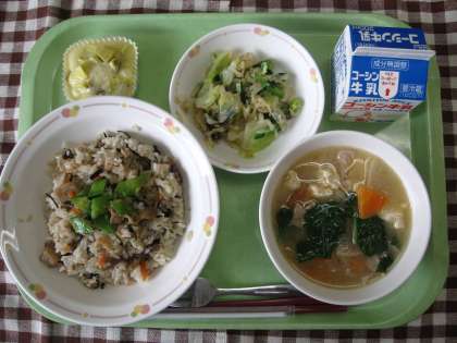 エリンギ(長野) 人参(北海道) キャベツ(千葉) ほうれん草(群馬) 大根(青森) 小松菜(埼玉) さつま芋(千葉) 絹さや(群馬) 鶏肉(岩手) 豚肉(茨城)