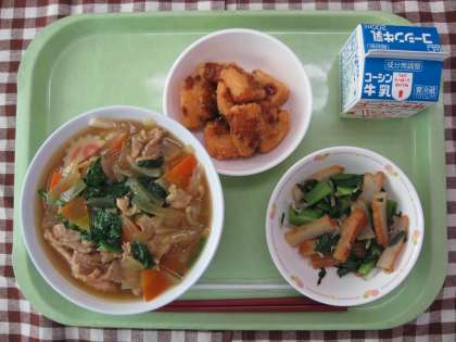 玉葱(北海道) 人参(青森) ほうれん草(埼玉) 小松菜(埼玉) じゃが芋(北海道) ちりめんじゃこ(兵庫) 豚肉(青森)