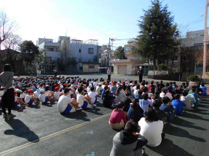 中休みは教員のいないところでの避難訓練を実施しました。本校は校庭の放送音量を控えているため、休み時間には放送での指示がなかなか通らず、検討事項です。集合してからはいつものようにいい姿勢でしっかりと話を聞いていました。