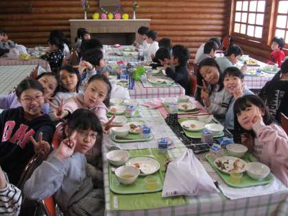 1学期に1度、各クラスごとにランチルームで給食を食べます♪