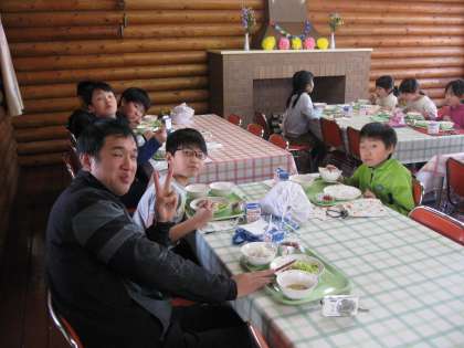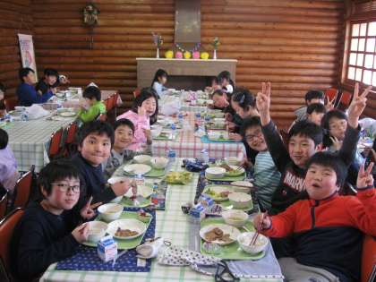 1学期に1度、各クラスごとにランチルームで給食を食べます♪