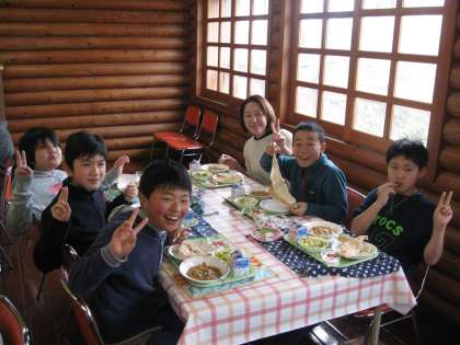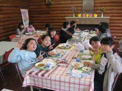 1学期に1度、各クラスごとにランチルームで給食を食べます。