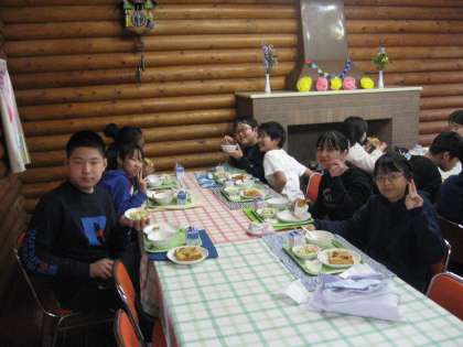 1学期に1度、各クラスごとにランチルームで給食を食べます。