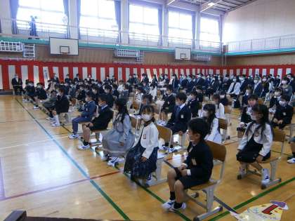 また、式後の学級指導も児童だけで行い、保護者の皆様には体育館にて1回目の保護者会となりました。道具箱を持ち帰っていただくなど、例年とは違った流れになりましたが最後に校庭で下校する様子は、皆さんにこやかな表情で一安心しました。