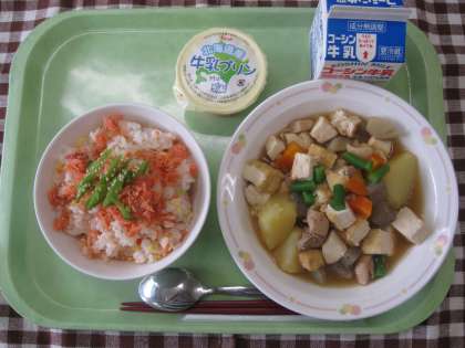 人参(青森) ごぼう(群馬) じゃが芋(茨城) エリンギ(長野) 鮭(ロシア) 卵(秋田) 鶏肉(岩手)