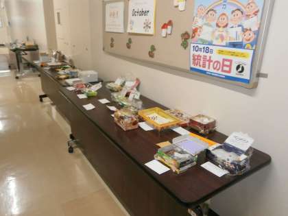 10月29日(木)です。3年生が総合的な学習の時間に取り組んだ「環境学習」で巡り会った「宝物」を職員室前に展示しています。