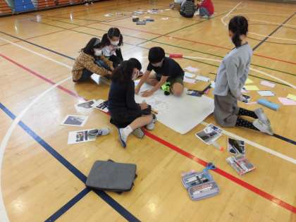 7日(土)は、撮ってきた写真とポイントを模造紙に貼り、地域安全マップを作りました。