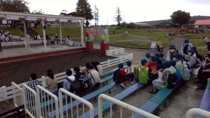 午後はグループ行動です。なんと!「こぶたのレース」に巣鴨小の6名が出場しました。観衆の、お兄さんお姉さんたちから大きな声援が送られ、ゴール後は温かい拍手に包まれました。それぞれのグループが、今しかできない貴重な体験を味わうことができました。
