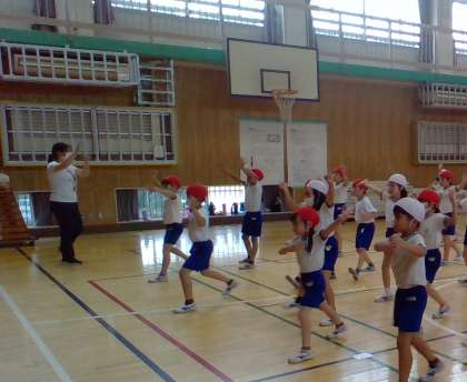 今年度は、3年生と一緒に表現と団体に取り組みます。4年生は、3年生にダンスを教えたり、リレーのバトンパスの仕方を教えたりと、先輩として頑張っています。