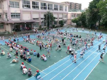 全学年が赤・白に分かれ、赤玉、白玉をそれぞれ何個拾って箱に入れたかを競いました。