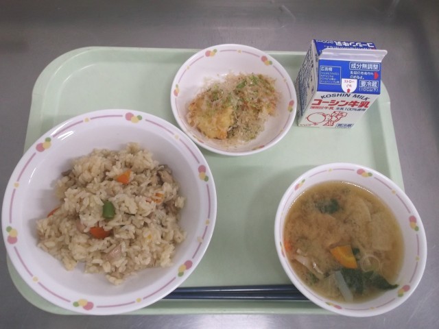 じゃがまるくんは見た目はたこ焼きですが、中身はじゃがいもです。じゃがいもを蒸して潰し、チーズを混ぜて丸めます。天ぷらの衣をつけて油でさっくり揚げ、ソース、削り節、青のりをかけて完成です。調理員さん総出で作りました。
