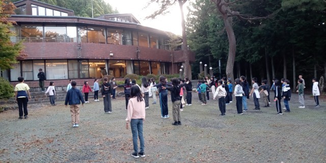 朝会のグループごとの集合がとても素早くなりました。たくさんほめられました。ラジオ体操をしました。また、先生から山中湖のお話を聞きました。