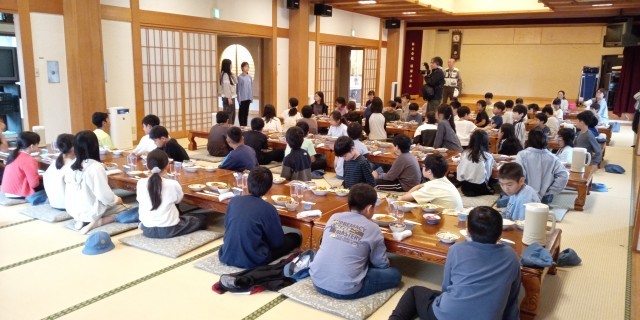 2日目皆で食べる最後の昼食です。カレーライス、サラダ、富士山ゼリーとても美味しかったです。おかわりをしている子供もたくさんいました。