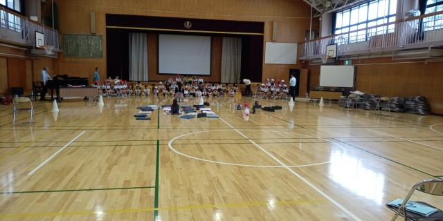 リハーサル(木曜日)の前に、各学年の練習を見ました。先生の思いと、子供たちのがんばりが伝わってきました。私から、良かったところと、ポイントを話しました。子供たちは、真剣に聞いていました。