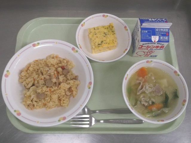 秋の読書旬間に合わせ、本校のにじいろ図書館とのコラボ給食を実施しました。3回目の今日は、「せかいいいちおいしいスープ」という絵本にでてくる石のスープです。鶏ガラから丁寧にとったスープで、豚肉やじゃがいも、キャベツ、大麦などを煮込んで作りました。「石のスープ」という不思議な名前に興味をもつ児童が多くいました。ぜひ、読んでみてくださいね。