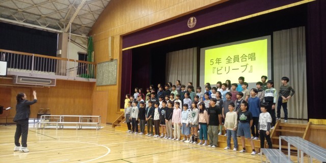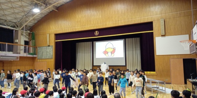 リハーサルでは、秋田県能代市立浅内小学校(フレンドスクールとして本校と連携)に配信して、学年の演技を見ていただきました。