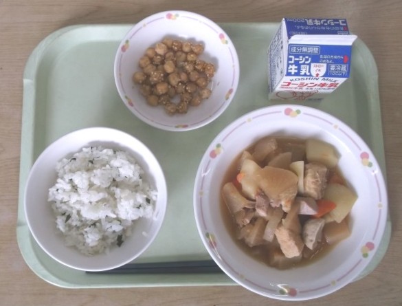 大根やこんにゃく、厚揚げ、つみれ、さつまあげなどが入ったおでんです。じっくり、コトコト煮込んで作りました。大根やこんにゃくに味がよく染み込みました。