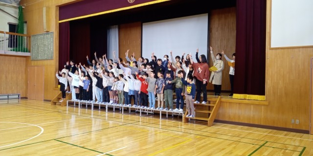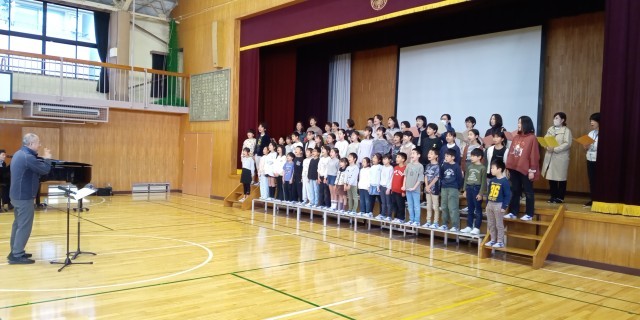 音楽朝会がありました。明日、P連音楽の集いに出演する児童、保護者が「世界に一つだけの花」「風になりたい」を全校児童の前で披露しました。大きな拍手をエネルギーに変えて明日がんばります。
