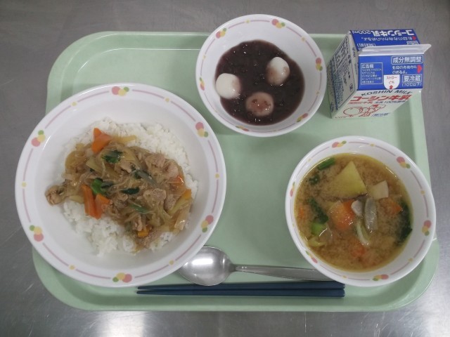 1月11日は鏡開きです。鏡開きは神様にお供えした鏡餅を開き、無病息災を願って食べる行事です。給食ではお餅の代わりに白玉を使い、甘く煮た小豆と合わせました。