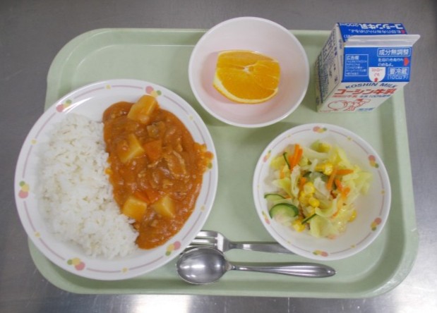 今日のくだものは、和歌山県産の旬のネーブルです。味が濃く、香りも楽しめます。冬になると、みかんやオレンジなどの柑橘類が旬を迎えます。給食でもいろいろな種類の柑橘が登場しますので、お楽しみに!
