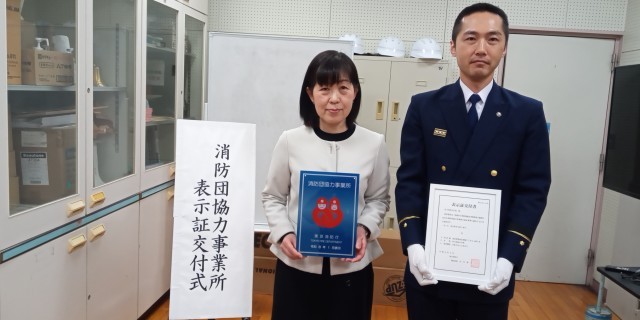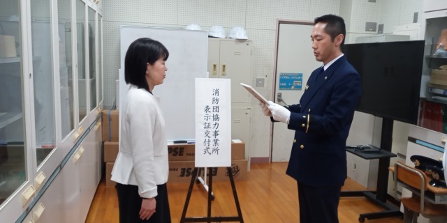 東京消防庁より、消防団協力事業所の表示証をいただきました。消防団の本校校庭での活用に対していただきました。全校朝会で披露しました。正面玄関に掲示しました。巣鴨消防署の皆さん、ありがとうございました。