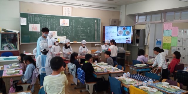 1年生の給食準備の様子です。とてもしっかりと準備が出来るようになりました。
