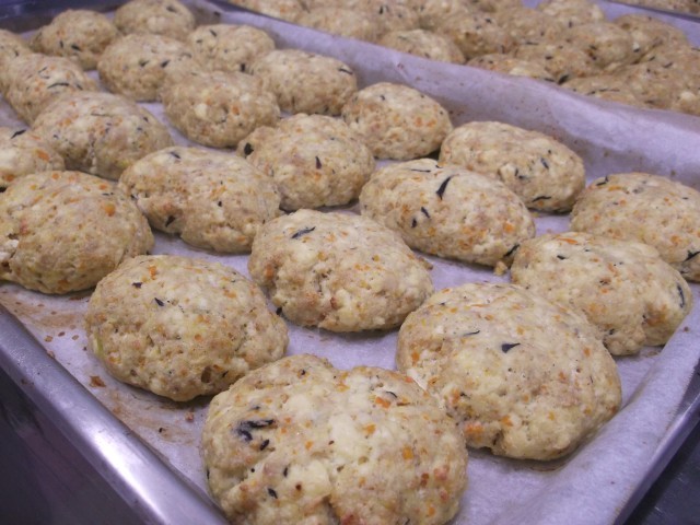 給食室で低学年・中学年・高学年用にサイズを変えて1つ1つ丸めています。