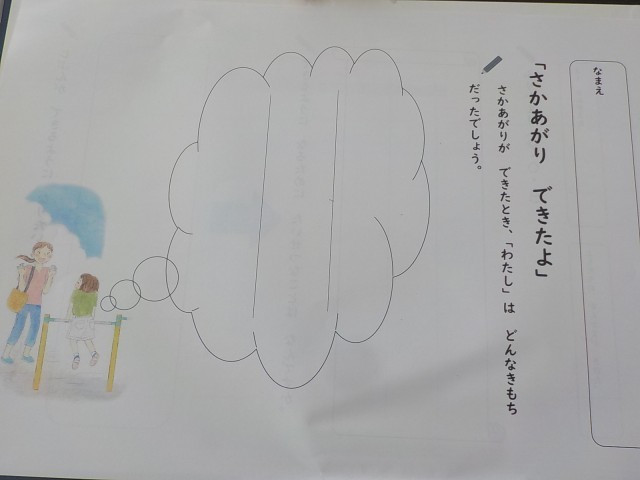 「逆上がりできたよ」という題材でやりぬく心について学習しました。