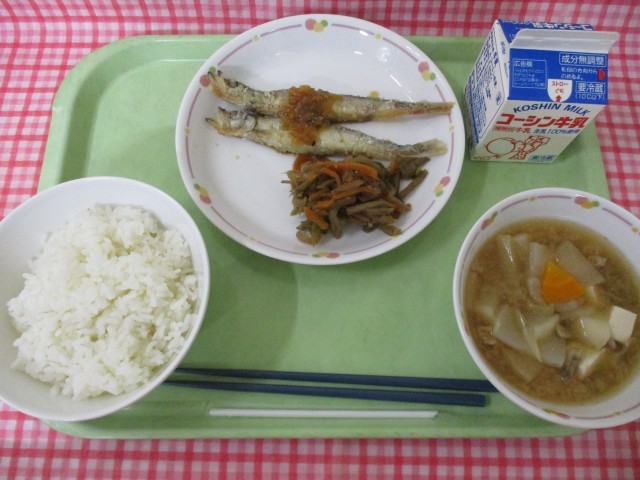 ししゃもは、丸ごと食べることができる魚です。頭からしっぽまで丸ごと食べることで、魚に含まれるカルシウムなどの栄養をすべて摂ることができます。カルシウムは、丈夫な骨や歯をつくるのに欠かせない栄養素です。よくかんで食べて、丈夫な体をつくりましょう。