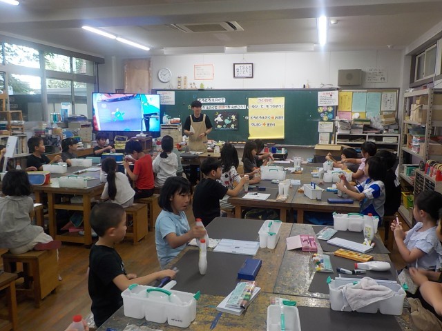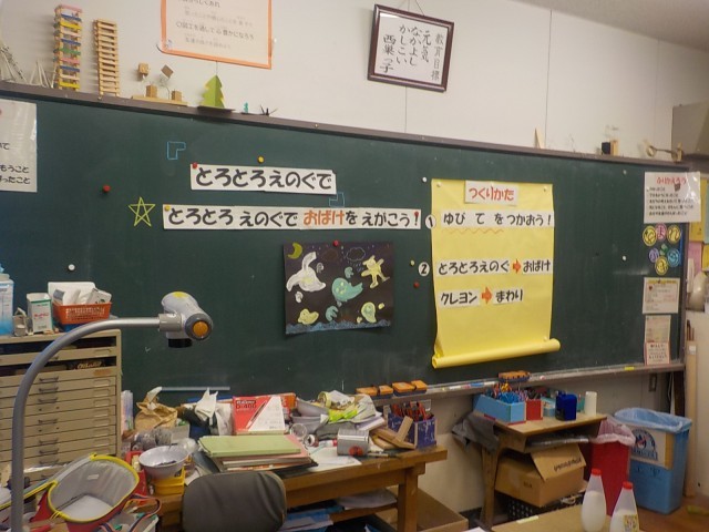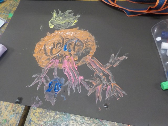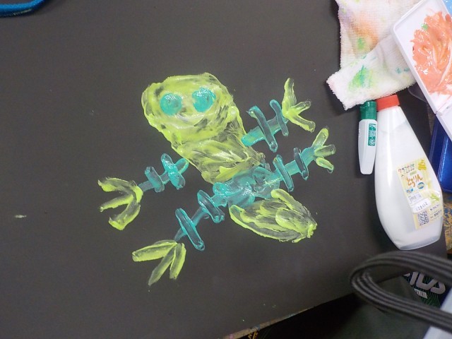 図工室で「とろとろ絵の具でおばけを描こう」の
