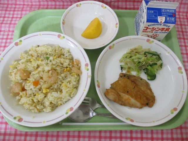 「ナシゴレン」と「サテアヤㇺ」は、インドネシアの料理です。「ナシゴレン」はチャーハンのような料理で"ナシ”はインドネシア語でご飯、"ゴレン"は炒めるという意味があります。「サテアヤㇺ」は、小さく切った鶏肉にスパイスなどで味をつけて串に刺して焼く、焼き鳥のような料理です。給食では串に刺さず、鶏肉の切り身を使用しました。