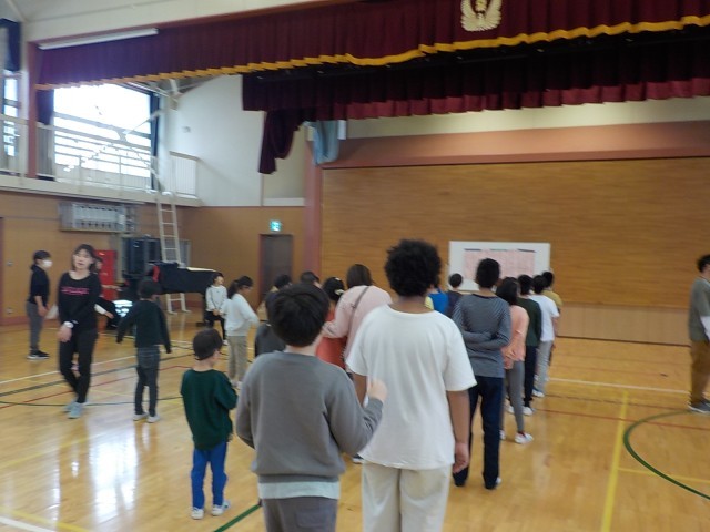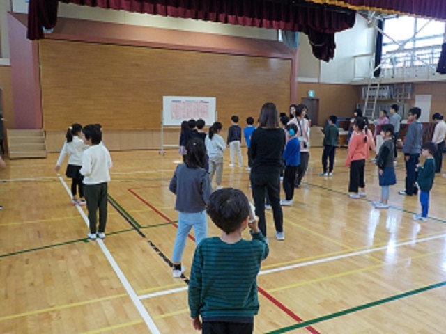 お腹からしっかり声を出す練習をしました。