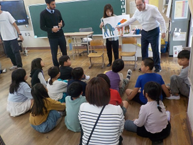 海外の方が来て、英語の本の読み聞かせやコミュニケーション活動を行いました。